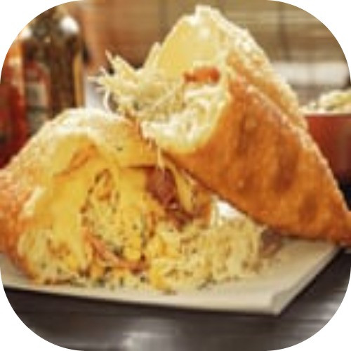 Delicie-se com o nosso pastel Romeu e Julieta, um clássico irresistível! Feito com massa caseira de produção própria e frito na hora que recebemos o teu pedido, ele chega à sua mesa com aquela crocância perfeita. O recheio combina o doce e cremoso sabor do queijo com a goiabada, em um contraste de sabores que é pura harmonia. Cada mordida é uma experiência de sabores que se equilibram e se completam, como um verdadeiro romance culinário. Perfeito para quem busca um toque de tradição com muito sabor!